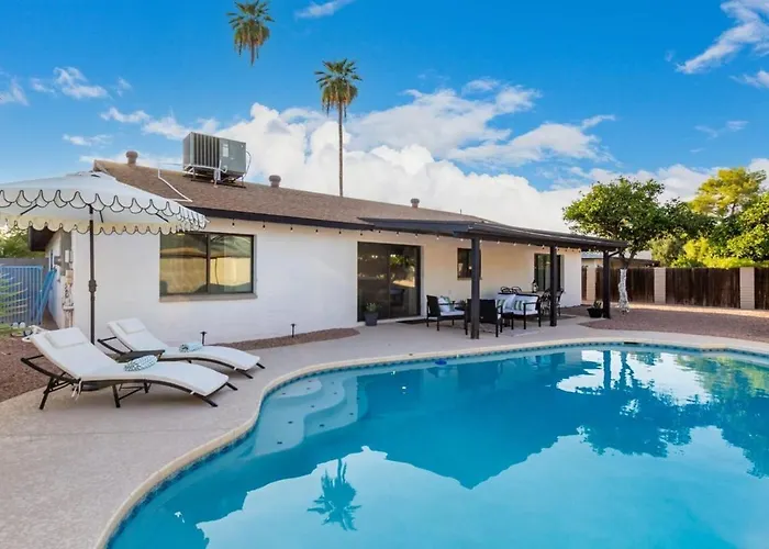 This property features an equipped kitchen including a fridge, oven, and glassware for preparing meals. Guests can dine at Princess Market Food and Deli approximately 15 minutes' walk from the Tempe villa. Phoenix Sky Harbor International airport is situated 13 miles away, while Southern/George bus station is in the vicinity of Broadway Palms Family Retreat Villa. The accommodation has a patio to relax on after a busy day, along with a private swimming pool.